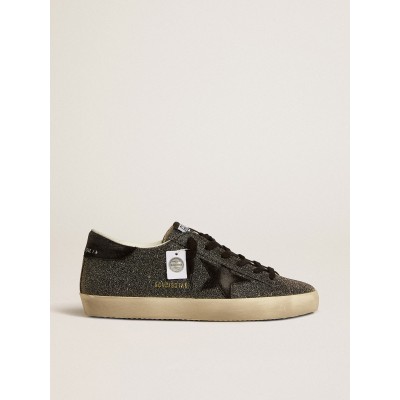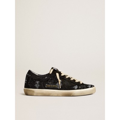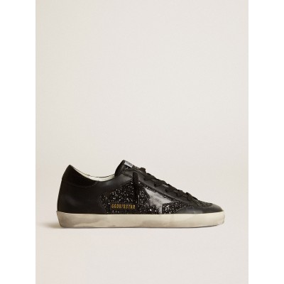 Women's Super-Star in black nappa and glitter with glossy black leather star