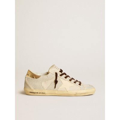 Men’s Super-Star in beige and caramel suede with black crackle leather star