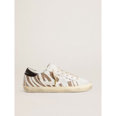 Women’s Super-Star LTD in white pony skin with brown glitter and white suede star