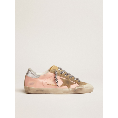 Super-Star in pink leather with suede star and silver heel tab