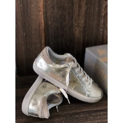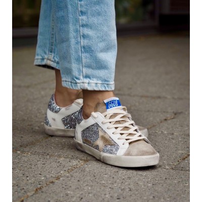Super-Star Sneakers with grey suede star and silver glitter tongue