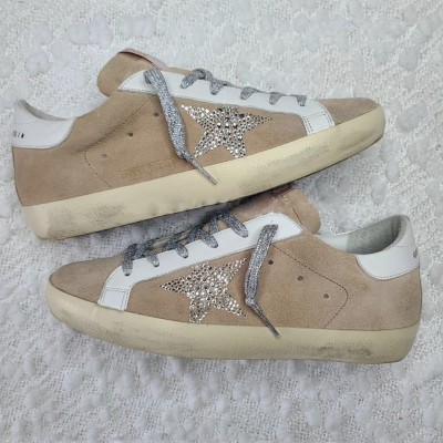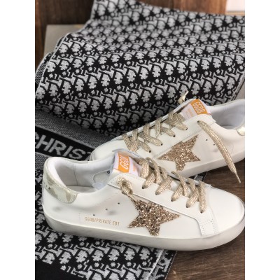 Super-Star LTD sneakers with gold glitter star and Golden metal laces