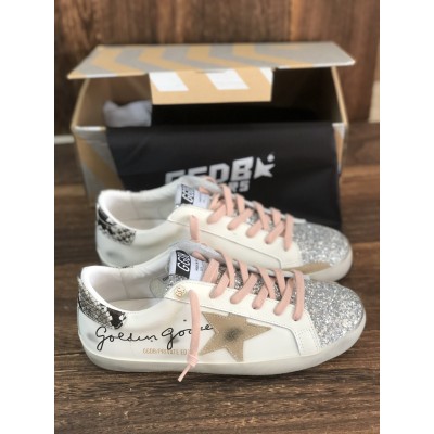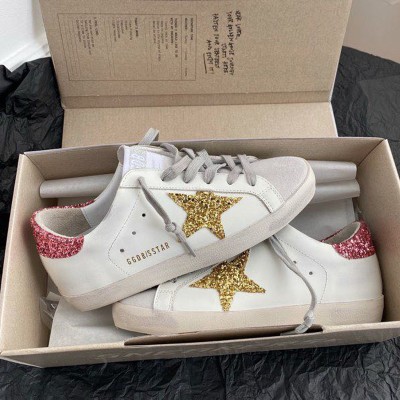 Women Super-Star Sneakers with gold glitter star and pink glitter heel tab