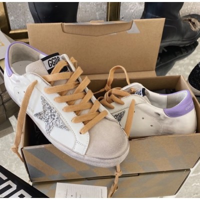 Super-Star sneakers with Berry Purple glitter heel tab and grey suede star