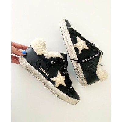 Super-Star Sneakers in black leather with shearling star and heel
