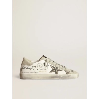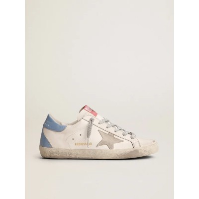 Super-Star sneakers with sky-blue laminated leather heel tab and ice-gray suede star