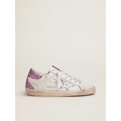 Super-Star sneakers with lilac leather star and purple glitter crocodile-print heel tab