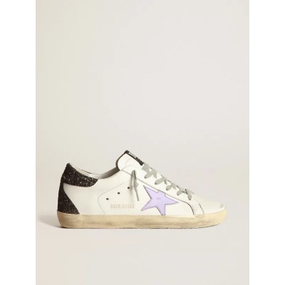 Super-Star sneakers with lavender glitter heel tab and light-blue metallic leather star