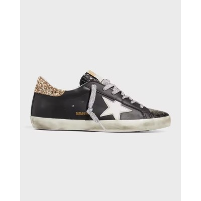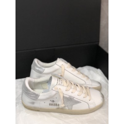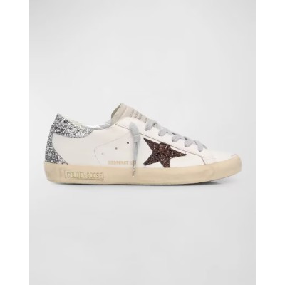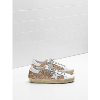 SUPERSTAR Sneakers in white leather uppper with gold glitter star and silver heel tab