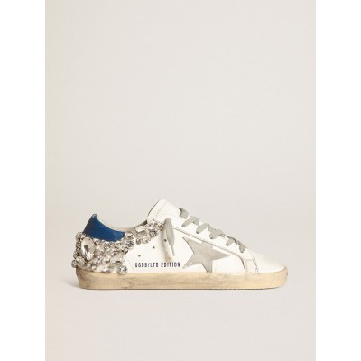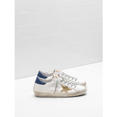 Superstar Sneakers with Glitter coated star and blue Leather heel tab