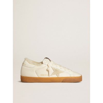 Women's Super-Star LTD in ivory nappa leather with platinum glitter star and heel tab