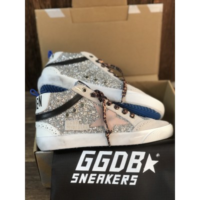 Mid Star Sneaker in glitter with pink star and leopard print lace
