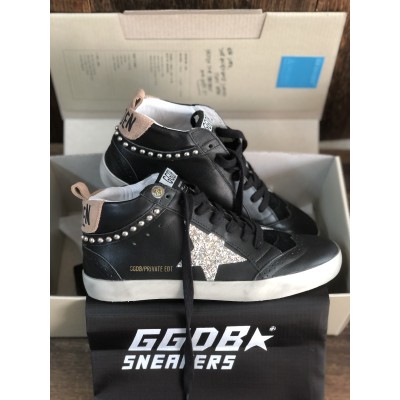 Mid-Star Sneaker in glitter upper with black leather star and red heel tab