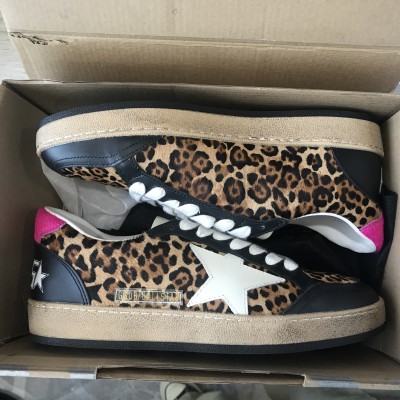 Ball Star Sneaker in leopard print with white leather star and hot pink heel tab