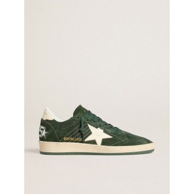Women's Ball Star in green suede with white leather star and heel tab