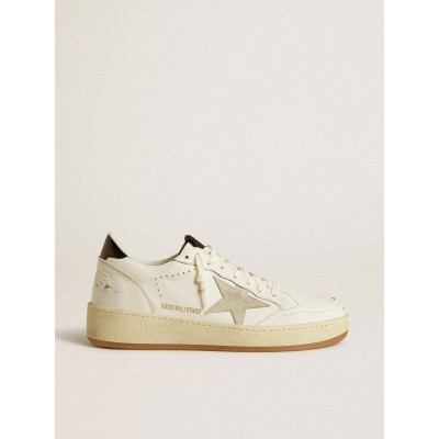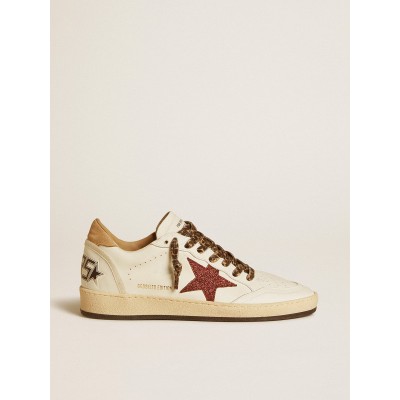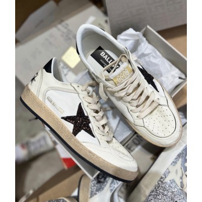 Ball Star LTD in white leather with black glitter star and gold glitter heel tab