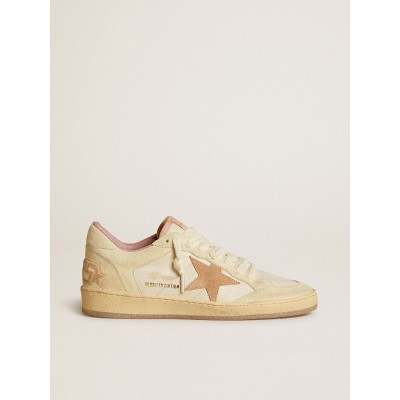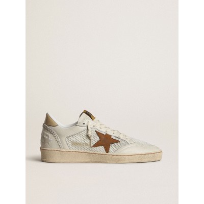 Women's Ball Star in white nappa and mesh with tobacco-colored nubuck star and beige heel tab