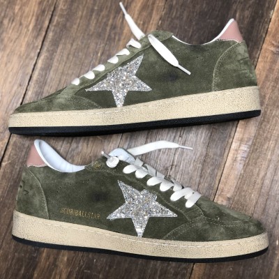Ball Star Sneaker in Deep forest green suede with glitter star