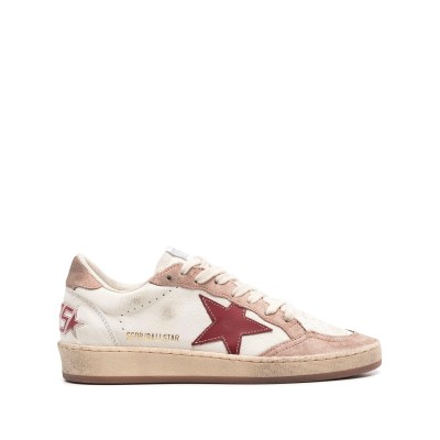Women's Ball Star Sneaker in white nappa leather with pink suede star and heel