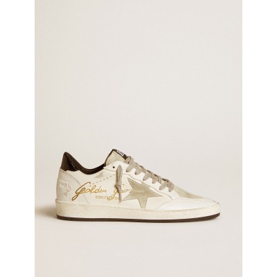 Women's Ball Star Sneaker in white nappa leather with light gold glitter star and heel