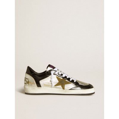 Ball Star in white leather with gold mix glitter star and black heel tab