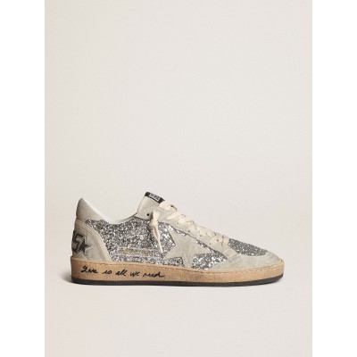 Women’s Ball Star in silver glitter with ice-gray suede inserts