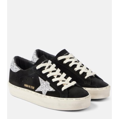 Hi Star Woman in black suede with silver glitter star and heel tab