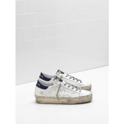 HI STAR Sneakers in white leather with white star and midnight blue Heel