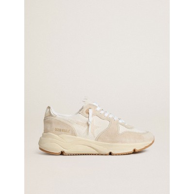 Women's Running Sole in canvas with beige star and platinum metallic leather heel tab