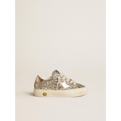 Super-Star Junior in glitter with a suede star and gold heel tab
