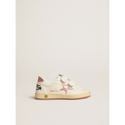 Young Ballstar in leather with pink glitter star and pink heel tab