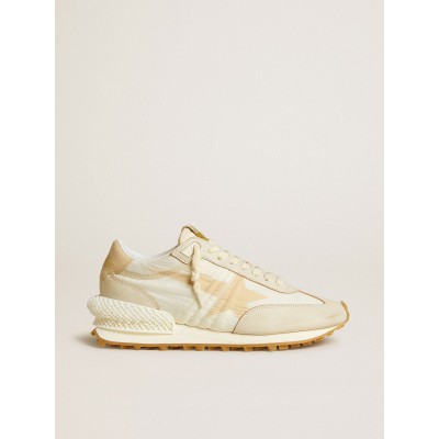 Women's Marathon in beige nylon and gray leather with beige printed star
