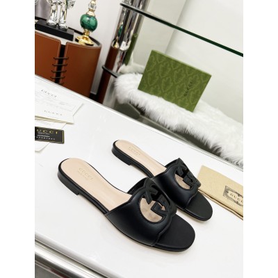 GUCCI Slides Ladies' interlocking double G hollow detail slippers