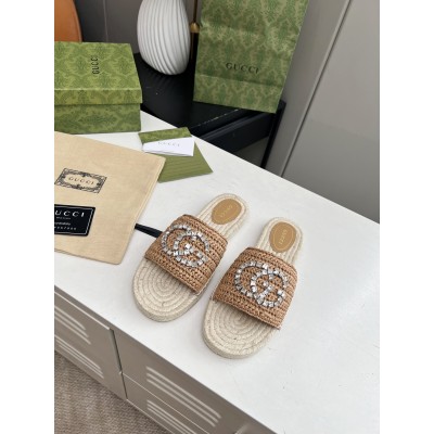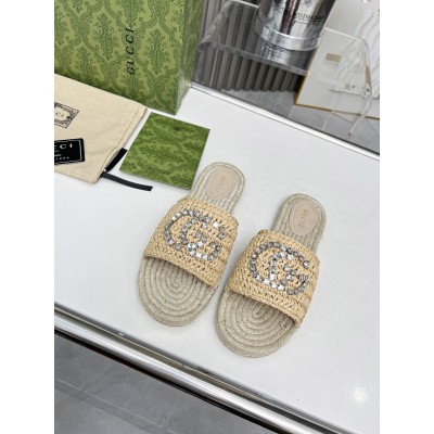 Gucci Flat Slides Ladies' interlocking GG rope soled Slippers