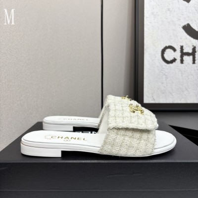 Chanel Flat Sandals CC Logo Women Summer tweed Slippers