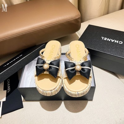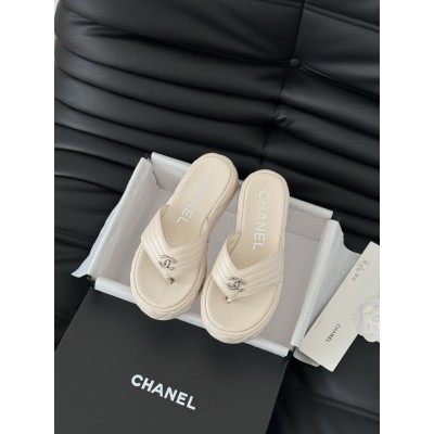 Chanel Sandals Platform Vacation Series Sheepskin Leather Flipflops