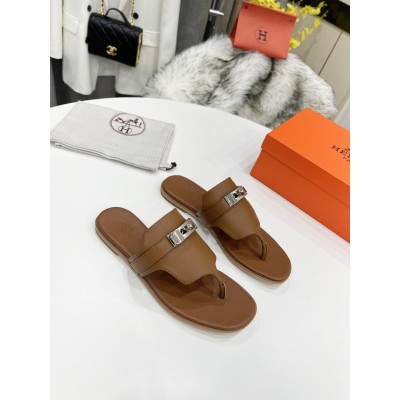 Hermes Slides Brown Leather Women Summer flip flops
