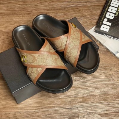 Coach Slides Men's Women camel Cherry print Summer Slippers