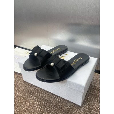 Dior Black Lambskin Slides Dioract Women's Summer Sandals