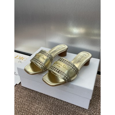 Dior Slippers D-lane Gold cowhide hollowed out Sandals