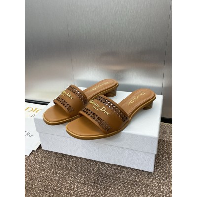 Dior Slippers D-lane camel cowhide hollowed out Sandals