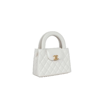 Chanel Small Kelly Shopper White Shiny Aged Calfskin Brushed Gold Hardware