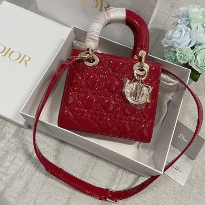 Dior Lady Bag In Red Shiny Leather