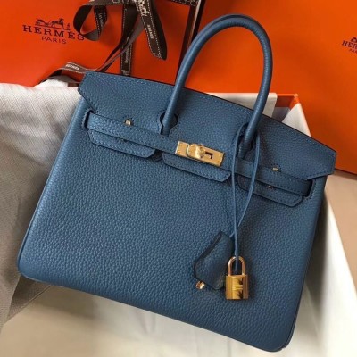 Hermes Birkin In Blue Agate Clemence Leather GHW