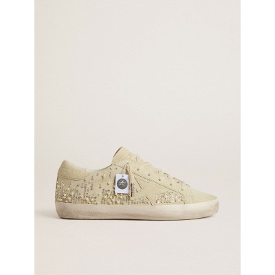 Women’s Super-Star in beige suede with pearls and Swarovski crystals