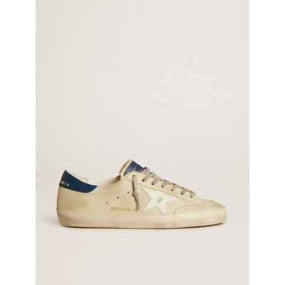 Men's Super-Star in leather with blue leather star and beige nubuck heel tab