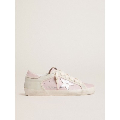 Super-Star in pink leather with suede star and silver heel tab