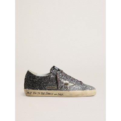 Women's Super Star with glitter upper and silver metallic leather star