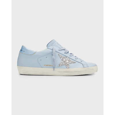 Super-Star in Blue metallic leather with silver glitter star