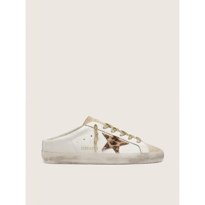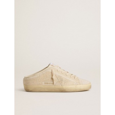 Women's Super-Star Sabot in beige canvas with embroidered beads and beige suede star